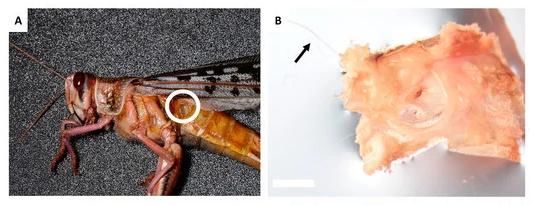 沙漠蝗虫的耳朵更灵敏,覆盖的频率范围更广,可以作为读取神经系统电生理信息的良好模型。