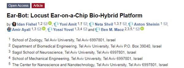 不久前,该团队题为“Ear-Bot: Locust Ear-on-a-Chip Bio-Hybrid Platform”的研究成果正式发表在《Sensor》杂志上。